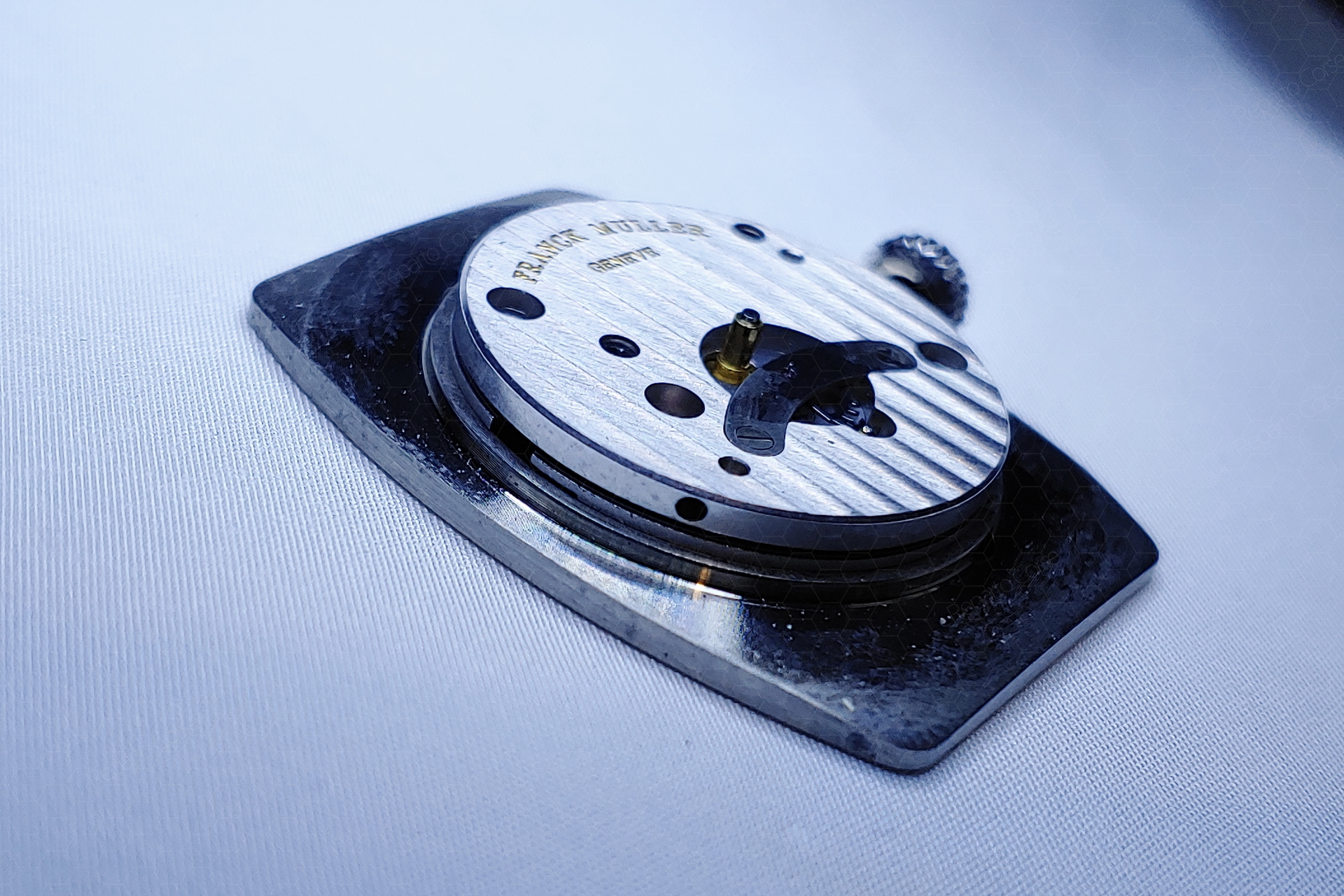 시계를 받아보니 케이스는 온통 스크래치 투성, 백을 고정하는 네 개의 나사 중 하나는 제 것이 아니고 빨갛게 녹슬었다. 다이얼은 양 측면에 크랙이 갔고 아무리 봐도 이건 전투용으로 막 사용한 시계 같은데. 하지만 프랭크 뮬러 특유의 레트로그레이드 세컨드, 0에서 60초까지 쭉 가다가 마지막에 다시 0으로 점프하는 방식의 초침이 적용되었다.